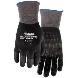 Stealth Blackbird Microfoam Nitrile Coated Glove with Nitrile Dotted Palm, Large, 15gg Fine Nylon Shell, Snug-Fitting Wrist