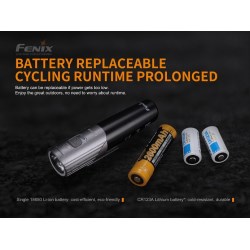 - Battery Power Source(1) 18650 Li-Ion Battery, (2) CR123A Lithium Batteries