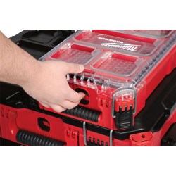 PACKOUT Stackable Compact Organizer, Plastic, Includes 1 Large and 4 Small Removable Storage Bins, IP65 Rated Weather Seal, Transparent Lid, Heavy Duty Latches and Reinforced Hinges, No Travel Bin Seal Prevents Small Part Migration Between Bins, Integrated Screw Slots on the Back of Bins Allow Wall Mounting