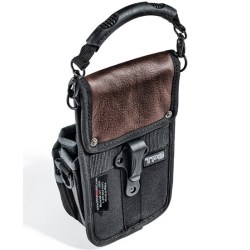 Tool Pouch, Includes 4 Inside Vertical Pockets and 11 Outside Vertical Pockets, 3 Long Shanked Tool Pockets, 1 Meter Pocket, 2 Small D-Rings, 8" Electrical Tape Strap, Detachable Rubber Handle and Metal Connection Clip