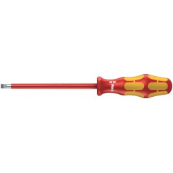 Insulated Screwdriver for Slotted Screws, 7/32" Tip, 5" Shaft, Protected to 1000 Volts, Smooth Hard Zones for High Speed Turning, Soft Grip for High Torque Transfer, Hexagonal Anti-Roll Feature, Conical Blade