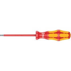 Insulated Screwdriver for Slotted Screws, 7/32" Tip, 8" Shaft, Protected to 1000 Volts, Smooth Hard Zones for High Speed Turning, Soft Grip for High Torque Transfer, Hexagonal Anti-Roll Feature, Conical Blade