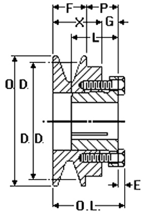 Browning Bushed Classical Gripbelt Cast Iron Sheave, 1 Groove, 3/8" Min. Bore, 1-1/2" Max. Bore, 3.35" OD, Uses H Bushing, For 4L or A, 5L or B Section Belt