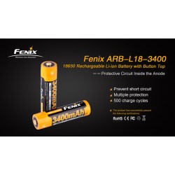 18650 Rechargeable Lithium-Ion Battery with Button Top, 3.6V, 3400 mAh, 500 Charge Cycles