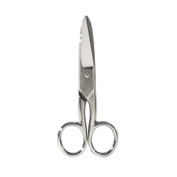 Electrician's Scissors, Nickel Plated, Designed for Telecon and Electrical Applications, Cuts 19 and 23 AWG Wire/Cable/Cordage, Includes Scraper and File on Outside of Both Blades, Serrated Teeth