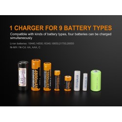 - Compatible with Li-Ion Battery Types10440, 14500, 16340, 18650, 21700, 26650